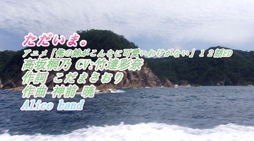 JUGEMテーマ:3Dprinter アニメ「俺の妹がこんなに可愛いわけがない」12話EDから 「ただいま。 」 をアリスバンド、東方チーム、ピアノ伴奏、ショートバージョンで歌ってみました。 日本語の字幕あり。伴奏は、シンセサイザー調にしています。 オリジナルは、高坂桐乃 CV:竹達彩奈 が歌っています。作詞 こだまさおり、作曲 神前 暁。 ではまたーー。(^^)/~~~