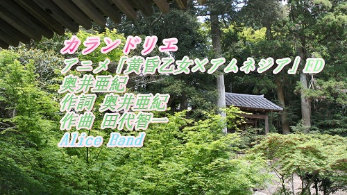 JUGEMテーマ:3Dprinter アニメ「黄昏乙女×アムネジア」EDから 「カランドリエ」 をアリスバンド、おねえさんチーム、ピアノ伴奏、ショートバージョンで歌ってみました。 日本語の字幕あり。伴奏は、オルガン調にしています。 オリジナルは、奥井亜紀 が歌っています。作詞 奥井亜紀、作曲 田代智一。 現在、ユーチューブに登録の動画は、すべてで約1050動画、公開中793動画、 ブロック中48動画、限定公開は209動画となりました。そのほかに、完全に消...