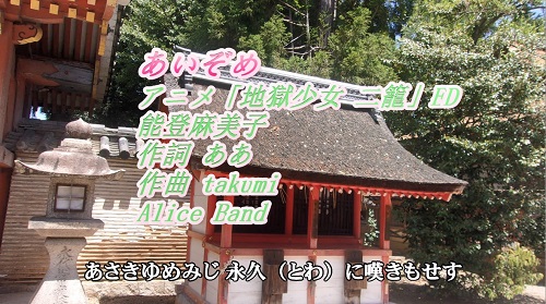 JUGEMテーマ:3Dprinter アニメ「地獄少女 二籠」EDから 「あいぞめ」 をアリスバンド東方チーム、ピアノ伴奏、ショートバージョンで歌ってみました。 日本語の字幕あり。伴奏は、ファンタジー調にしています。 オリジナルは、能登麻美子 が歌っています。 ではまたーー。(^^)/~~~