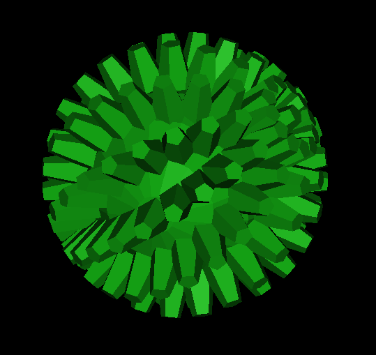 JUGEMテーマ:3Dprinter コロナウイルスをマンガチックにSTL化 その2です。 突起の本数を増やしてみました。より気持ち悪さを表す試みとして・・ うーーむ、すこしかわいくなってきたような。。意図した感じには、程遠い。。 これって印刷できるのかな。また時間のある時に印刷しておきましょ。 ではまたーー。(^^)/~~~