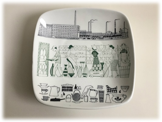 JUGEMテーマ:ロンドンから北欧食器いろいろ ホーム > フィンランド - 陶磁器 アラビア/Raija Uosikkinen/ファクトリー/スクエアトレイ<レア> アラビアファクトリー訪問記念プレート(非売品参考商品)です。 工場で働く人々や風景を描いたとても珍しいプレートです。 ホーム > フィンランド - 陶磁器