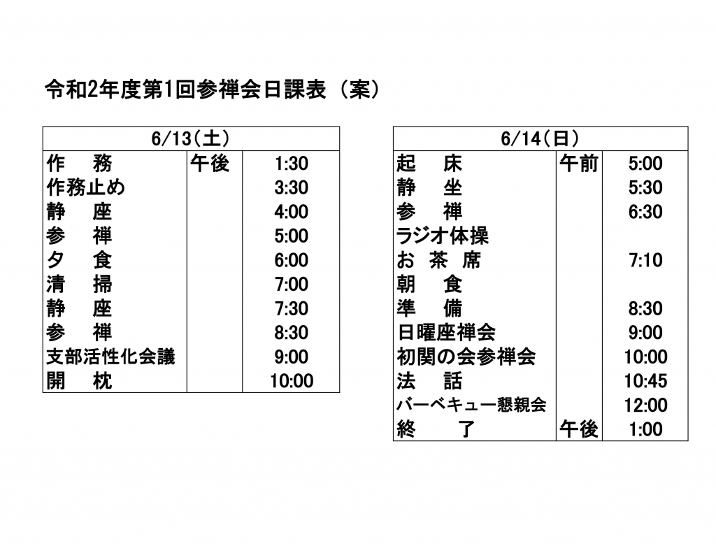 JUGEMテーマ:禅 人間禅会員各位 新型コロナウイルス感染拡大の先が見えない中、人間禅の諸行事も5月末までは残念ながら延期や中止を余儀なくされています。 こうした困難な中ではありますが、先を見越した活動を一歩づつでも進めてまいりましょう。 当初5月23日〜24日に予定されていました房総支部令和2年度第一回参禅会が延期され、下記の要綱で開催されることになりました。 今回は名誉総裁葆光庵老師にご担当師家として御巡錫頂く初めての参禅会です。 どなたでも参禅が許されていますの...