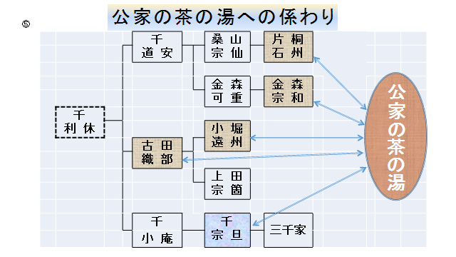 JUGEMテーマ:禅 禅セミナーの『茶道勉強会』は1月18日午後1時30分〜2時30分の間おこなわれました。 今回は、芳賀幸四郎著『わび茶の研究』を参考にしながら、江戸時代初期の茶道特に「公家の茶の湯」に焦点を当てて勉強しました。 年号も令和となって各種報道も多く、皇室は随分身近になったように思います。しかし「公家の茶の湯」となりますと依然別世界の事柄の感がありますので、ビューグラフを多く使って勉強を進めました。 利休後の茶の湯は、利休の茶の湯をベースとしながらもその担い手によっ...