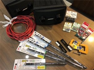 雨やら台風接近でみなさま大丈夫ですか?@おざさです。 ということで。 台風と雨で動けないかもしれない休日のために 先日購入したBOSEのスピーカのスタンドの材料を買いに行き、 今日はそれの組み立てです。 ※相変わらずのテキトーな材料での制作なので真似する人は自己責任で。 前々から「多分使えるだろう」と思っていたダイソーさんで 柱となるポールとストッパーを購入。長さを任意に決めるため延長ポールも買う。 (長さによって接続できる・できないがあるので注意) クランプやネジ・固...