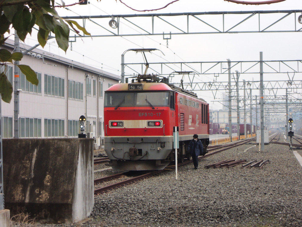 JUGEMテーマ:鉄道 昨日、近所の百済貨物にEF510がおりました。0番台の17号機 富山機関区所属です。 もう皆さんも覚えましたよね。0番台は赤、500番台は青…(笑) パンタグラフを上げてテールランプも付いてたので、走り出すのかと思って20分くらいジ〜っと見てたんですが…(*'▽') 別に暇なわけではないんですよ・・・ 近くで聞くとすごいエンジン音で迫力あります。 別の所に21号機。これも富山機関区所属。遠いところから来てますねぇ〜 横から見ると長いです。 鉄...