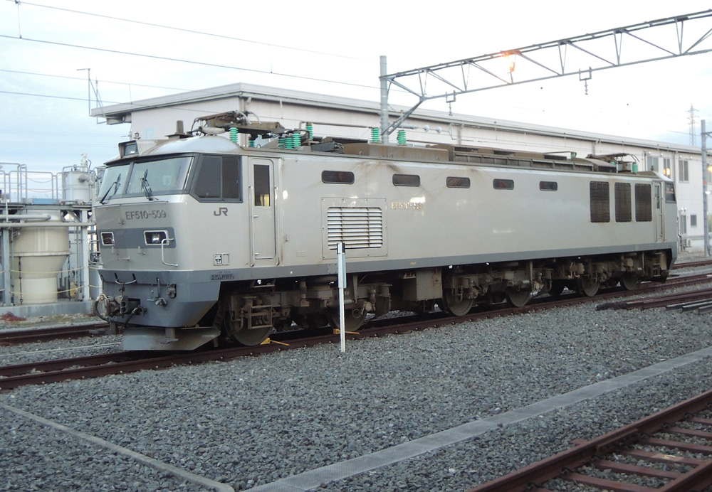 JUGEMテーマ:鉄道 夕方に外出すると、地元の百済貨物にEF510の509号機が… これ、寝台特急カシオペアを牽引するために、2010年にシルバーの塗装で製造された509号機、510号機の1台です。 2016年のカシオペアの定期運行終了後、貨物へ。 今はサイドのステッカーも外されてます。 かつてのカシオペア時代。 EF510はヘッドマークが付くと、顔がぐっと引き締まりますね。 帰宅前に見てもまだいました。