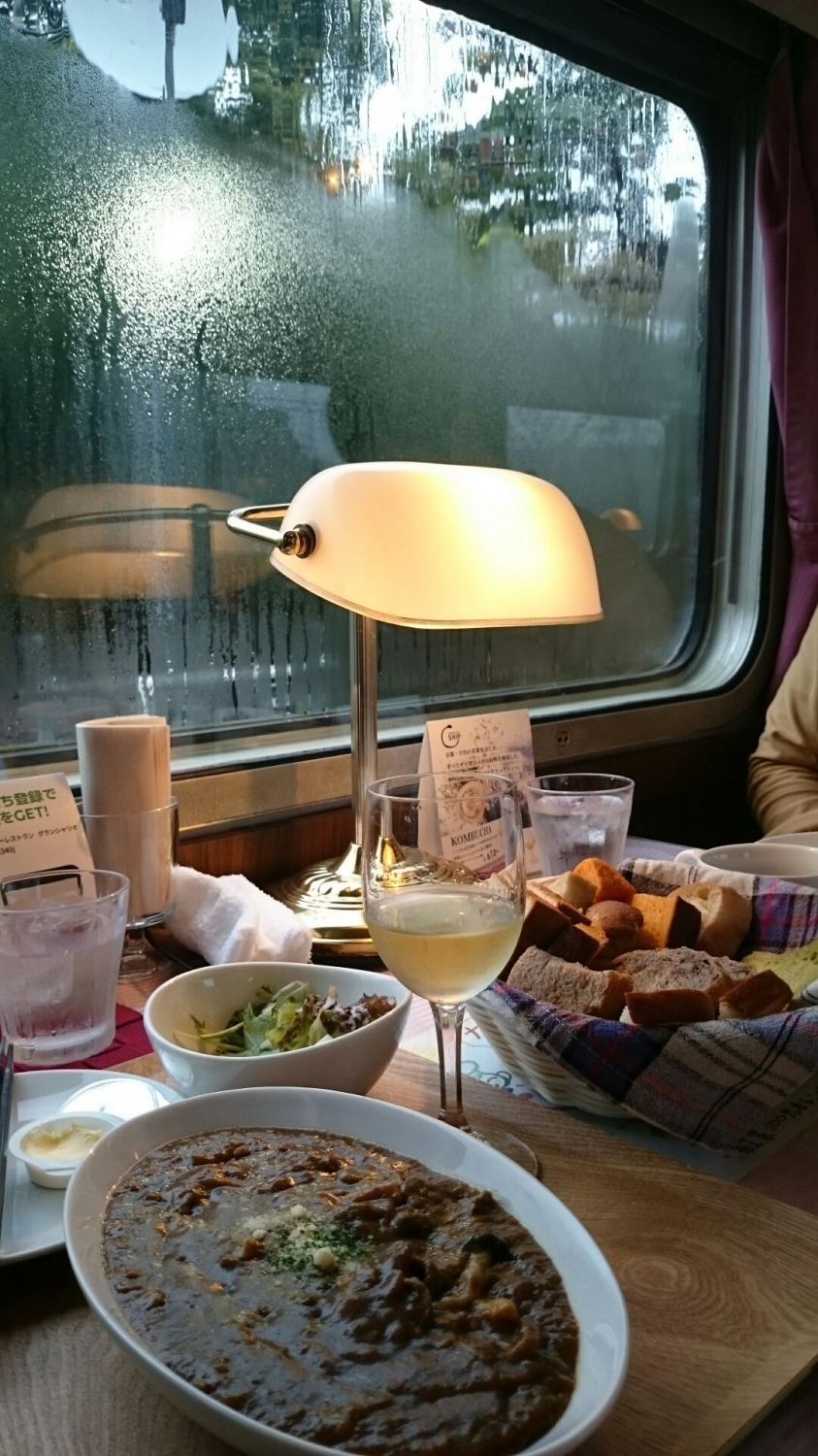 JUGEMテーマ:鉄道 廃止になった寝台特急北斗星の食堂車が東川口に保存されレストランになってるので、行ってきました。 ラグビーの友人を呼び出して…(^^) グランシャリオはフランス語で北斗星。 ランプなど、当時の食堂車をできるだけ残してありました。 写真では豪華に見えますが、普通にカレーとベーカリーのセット。すごく美味しかったです 外は雨で、窓の結露がいい感じ。 一両ですが外観も綺麗に維持されてます。24系客車。 雨が強くなかったら、もっとゆっくり見たかった...