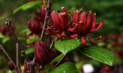 JUGEMテーマ:ハーブ 購入リンク: http://www.marcheaozora.com/?pid=130427561 クロバナロウバイは、香る濃緑色の葉、多数の花弁からなるチョコレート色の甘く香る花が特徴です。 芳香は葉や枝にもあり、傷つくと強く香ります。 樹高は1.5mほどにしかならず、多数の枝を出して茂るので、宿根草花壇のアクセントにもなります。 栽培は容易で、寒さにも強く、毎年よく花をつけます。 和名: クロバナロウバイ 英名: Carolina Allspice 学名: Calycanthus floridus 原...