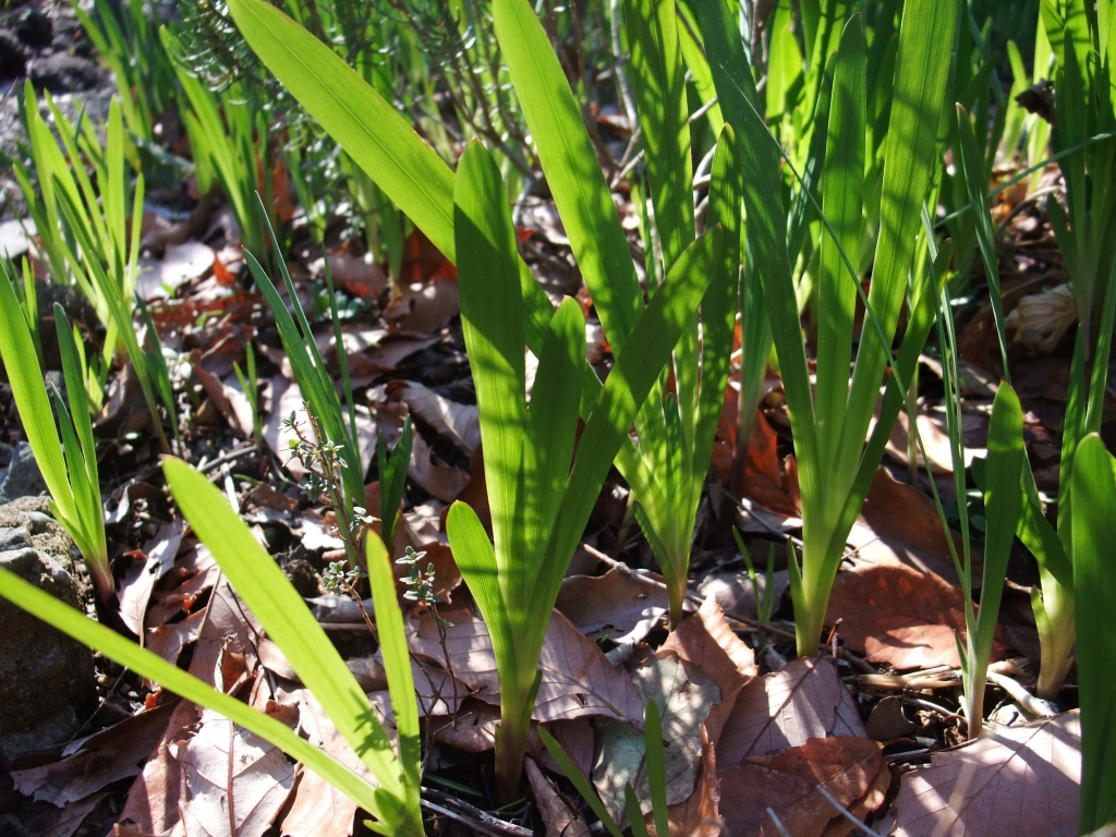 JUGEMテーマ:ハーブ 雨にみぞれに、雪、、、と、北陸特有のお天気が続いた後、やっと、昨日、お天気が回復したので 久しぶりにガーデンに行って、落ち葉を寄せたり、周囲の掃除をしたりという作業をした。 こんなにすっきりと晴れた太陽を見るのは、いつ以来だろう。 数日前に降った雪が、まだ少し残る中、植物たちは、着々と春への準備をしている。 スパラキシス。 花を咲かすのは、4月下旬だというのに、もう青々とした葉っぱ...