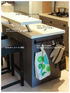 JUGEMテーマ:DIY&工具 水回り、ガスや電気の配線・配管とカウンター&キャビネットの設置が終わったところでキッチン工事もいよいよ終盤、残る大きな大工仕事はアイランドとパーテションづくりのみです。 当時は作業台+収納としての役割だけで計画していたアイランドでしたが、キャビネットの組み立て作業をしながらぼんやりと考えていたら、ご飯作りをこなすだけの場所だった殺風景で居心地の悪い以前のキッチンを思い出しました。 調理作業のためだけでなく、その合間にゆっくり座って休める場所、友人が遊びにきた...