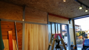 あけましておめでとうございます。 さて新年早々ですが、片づけにいそしんでいます。 ついでに放置中だった最後の内壁も貼り始めました。 っと言うか木材も在庫が余計にあるのですが、壁に貼れるだけの部材がございません。 仕方ないので余った部材で継接ぎになりますが、とりあえず貼ります。 デザインもへったくれも無いですが・・・・ま・・・諸々、物を置けば隠れてしまう部分でもありますのでキニシナイでおきましょう。 はい。 部材の都合で縦貼りです。...