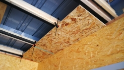 へい。 週末の作業です。 ちょっと作業にあきてきたのでOSBボードを1枚購入して天井貼りを試してみました。 1枚貼りだと1人だと重いし大変なので半分に切って貰いました。 んでとめてみた。 やはりと言うか行き当たりばったりなので 寸法はよろしくない。 継接ぎだらけになりかけていますが。。。。まぁ強度的にはどうにかなっているような感じです。 隅には1×4の部材でアクセント兼留め具的な感じ。 とりあえずイメージができた...
