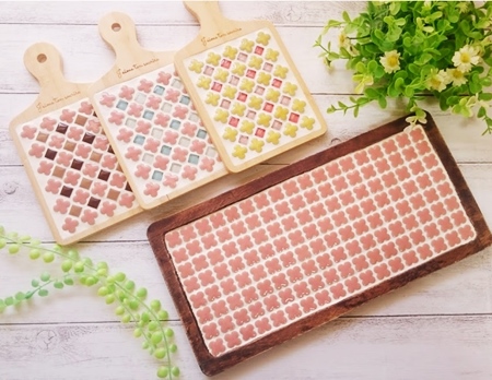 タイルのカッティングボードを作りました。 タイルが好きで以前から作っていて、今回作ったのは下の大きい方です。 黄色いのも前に作ったもの。 使う内に縦の幅がもうちょっとだけほしいな〜と思ったので、 縦を1列多くして、横は短くしました。 自作のカッティングボードたち! お花タイルがお気に入りで、ネットでまとめ買いしたんだけど、 ピンクを買いすぎてしまって。 せっせと消費中です。 検索したら、こんなに色があるみたい! 私が買ったとこ...