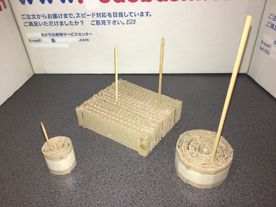 今回は塗装をする時の小技を五つほど紹介。 一つ目。 <スタンドの活用> 細かい物を塗装する時、 棒付きのワニ口クリップなどに挟んで立ててやると、 塗り易くなりますし、そのまま乾燥もできます。 この棒を立てる台は、売っているものもありますが、 簡単に自作する事もできます。 ダンボールを等幅で細長く切り、 それを束ねたり、丸めたりして、 接着剤などでバラけないように固定すれば完成です。 横着してマスキングテープなどで巻いてもいいでしょう。 ...