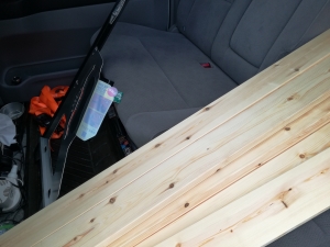 流石に4日目となると 疲れてきました。 間違いなくこの連休じゃ終わりません。 天井までいかないね。 明日なんとかって感じだけど。 もう疲れがたまり始めました。 作業台も出すのが面倒なのでこちらで切ってます。 OSBボードが1枚ほど足りなそうです。 追加購入するのももったいないので廃材で残りを貼ります。 こうなりました。 杉板の切断あまりがあったので延長です。 ここは、...