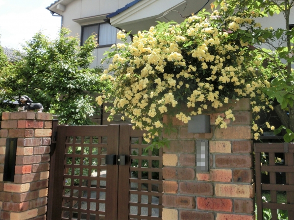 門柱を覆う 満開の モッコウバラ 心地良い季節で DIY日和です パレットに オイルステイン(防腐剤)を塗布し ダイソーの L型金具を コの字に組み ブロック塀に固定し 1×4のSPFで 棚を作り 100均の ミニ観葉を 飾って 可愛くしてみたつもり… うーーーん… いまいちセンスに 欠けますが&h...