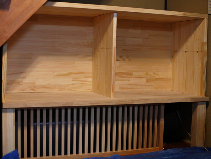 この夏に京都に引っ越して以来、週末は家具作り中心。ただ今、階段下のスペースに、荷重200kgに耐える食器棚を作成中。ようやく、外枠が出来て、今は引越前に使っていたIKEAの家具からリサイクルした板材で、棚板を作成中。 本当は、このまま続けて食器棚に引き戸をつけたいのだけど、先に下駄箱作って欲しいというリクエストが家内からあって、棚板作ったら食器棚の作業は一旦中断する予定。 今日は小休止で、これから北野天満宮周辺へお散歩に行きます。 JUGEMテーマ:DIY&工具...