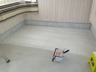畳が入ったことで、 工務店さんの大きな工事は全て完了。 あとは細かな工事と完了検査を残すのみとなりました。 それでも施主の塗装工事はまだ続きます。 今度は土間コンクリートの塗装です。 懲りずに下地塗装です。 シーラーとか下地塗料とか、 売り場では買うものとばかり思っていたのですが、 防カビ剤とか入っているのでイヤだなぁと思っていたら、 コンクリート塗料の缶の説明をよく読むと、 「1:1に水で薄めて下地塗り」 と書いてあって、助かりました。 …で、今回はアバウトにローラ...