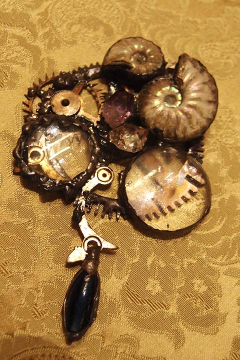 皆様今晩は。残暑が厳しい今日この頃、いかがお過ごしでしょうか。昨日A STORY新宿店で、作家Mantam マンタムによるワークショップが行われました。 出来上がった素晴らしい作品をご紹介致します。 まずはこちら。今回のワークショップ初参加のお客様の作品。レンズやアンモナイト、天然石を歯車に集めてブローチに。壁掛けにも使えそうという案も出ておりました。続きましてはこちらのオブジェ。骨董の瓶の中、見えるのは目玉。まつ毛もちゃんと付いているのだそうです!宙に浮いているのも素敵ですね!こちらは人形の背中に...
