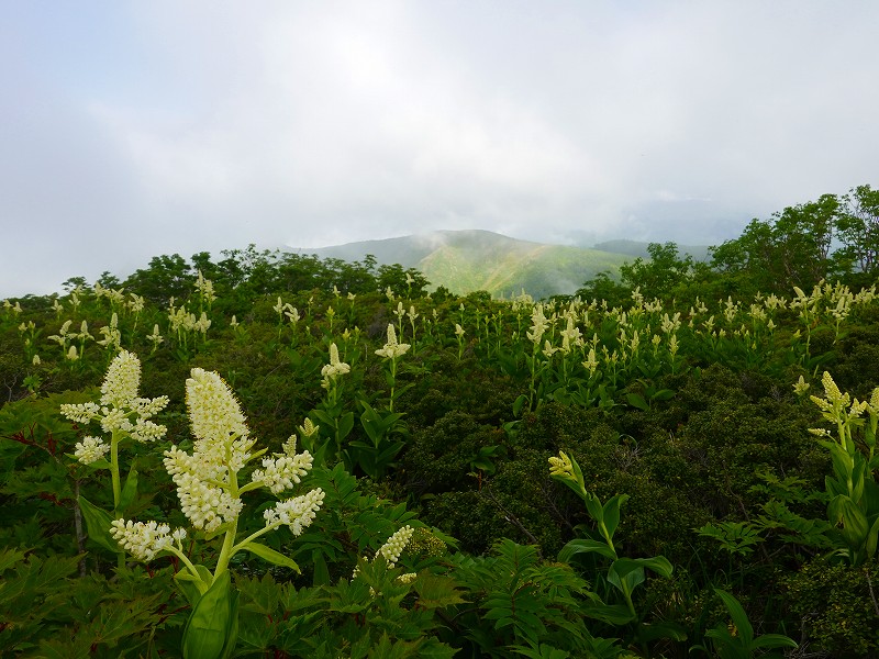 JUGEMテーマ:登山 今年はコバイケイソウの当たり年だ。今日登った大長山でもコバイケイソウが咲き誇っていた。 大長山へ コバイケイソウ満開 ウラジロヨウラクとコバイケイソウ