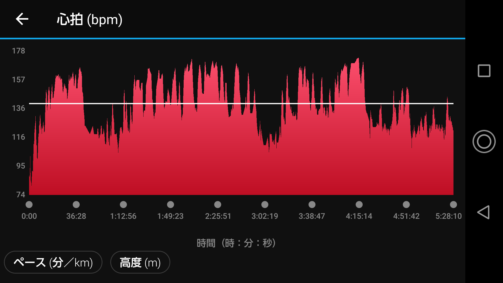 2016.4.29に鹿島山(912m)、大鈴山(1,011m)、平山明神山(970m)の三山縦走、2015に岩古谷山(799m)を別々に登ったが、今回はまとめて四山全部を縦走してみた。 アルプス山行とは違い距離的には短い(約8Km)ものの、隣接する約1,000m級の山々のアップダウンの激しさで登り心拍数160超え連発、時に170を上回り運動強度90%の無酸素系登山となった!💦💦(水分摂取量2L、🍙2個) 登山全体(休憩含む)の平均心拍数140(白線) 登坂では160~170心拍くらいまでを頻発した。登山時は...