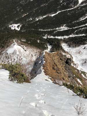 3月もお仕舞い間際になって、この冬はじめての八ヶ岳に出かけました(去年の2月にも同じような書き出しの記録がありました。かつてはひと冬に何度も出かけけていたはずなのに・・・)。 ここのところの暖かさで雪稜の雪も消えてしまったのでは、と心配でしたが、阿弥陀岳北稜を登ってみる事にしました。やや寝不足とは云え行者小屋までのアプローチで既にバテ気味。北稜に取り付くも十歩登ってゼーゼー、さらに登ってハァハァ、ってな具合でペースが上がりません。日曜の雪でトレースはだいぶ消えてましたが、これを踏み外...