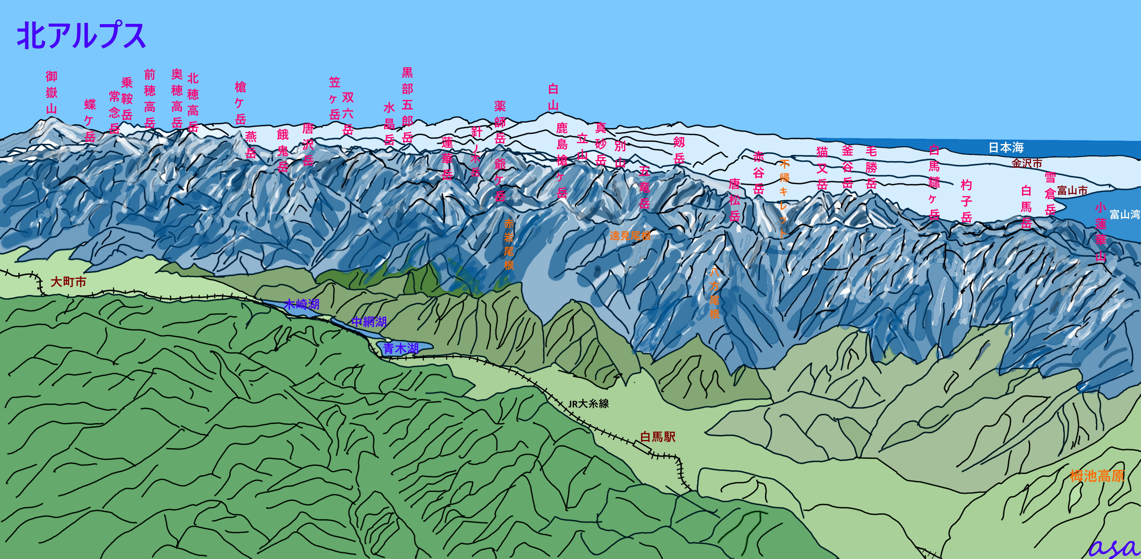蓼科山山頂からは、光耀とした北アルプス南部から立山連峰、後立山の美麗な全貌を眺望出来た。 北アルプスの皓然とした白峰は、人を寄せ付けないような荘厳さえ感じる。 Beautiful North Alps is climbed again soon. 北アルプス 南岳 大喰岳 槍ヶ岳 常念岳 鷲羽岳 大天井岳 真砂岳 野口五郎岳 燕岳 穂高連峰 西穂高岳 前穂高岳 奥穂高岳 涸沢岳 北穂高岳 北穂高岳 南岳 大喰岳...
