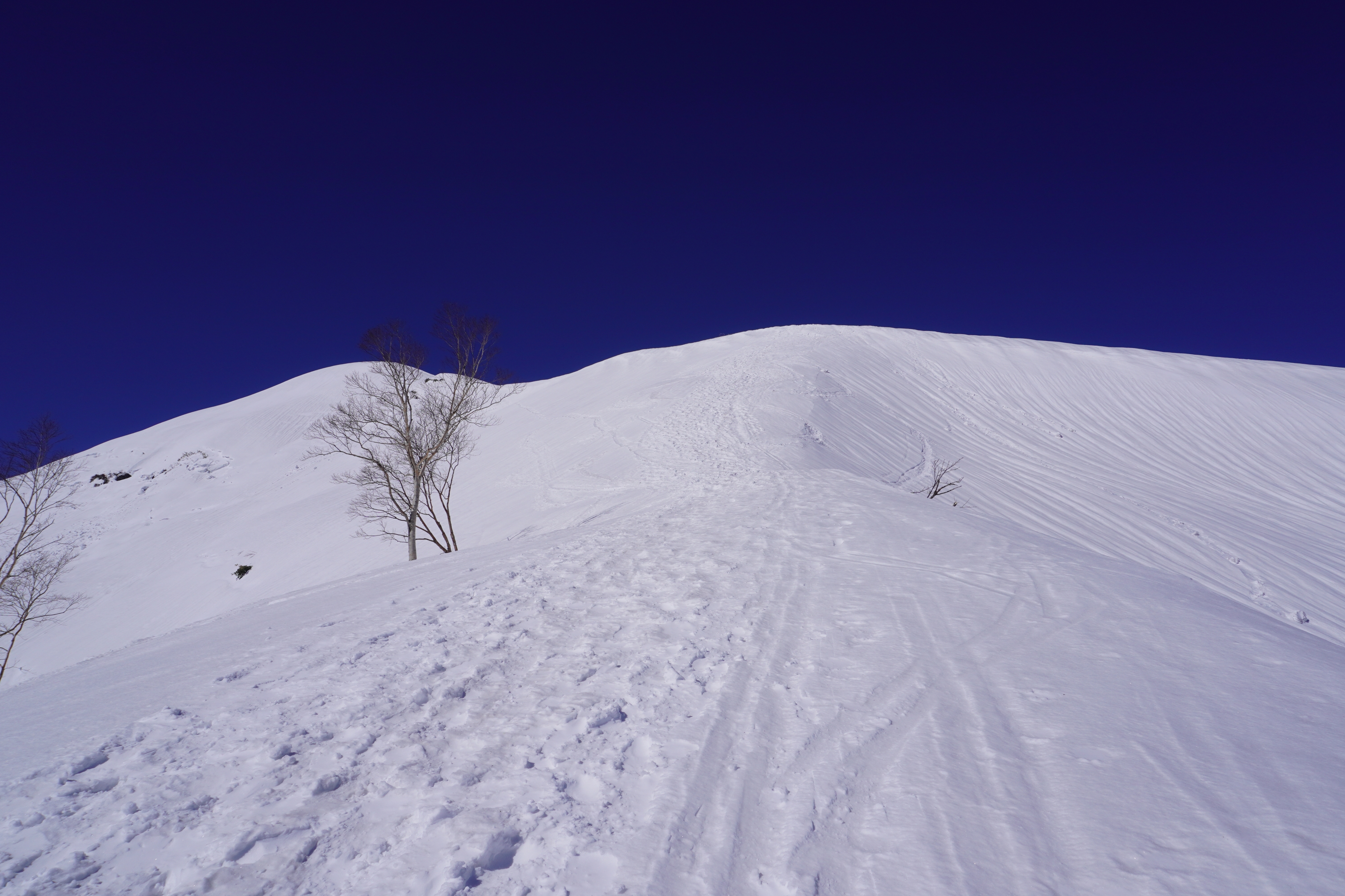 この日、野伏ケ岳は青と白と光だけの好天と、平日という事もあり人と出会うことも無い絶好の登山となった。 野伏ケ岳は雪山限定の登山道がないルートを行くので積雪後にトレースが無いと地図、GPS、などでルートを確認しての登山となる。特に野伏ケ岳は豪雪地帯なので一たび天候が悪化すればトレースは直ぐに無くなり、また短時間で積雪すると大変なラッセルを強いられる。 最近は雪山などリスクが増す登山は友人と行くようになっが、以前はオールシーズン単独行だったので道迷いなどによる遭難を避けるため地図読み...