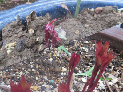 JUGEMテーマ:季節の出来事 JUGEMテーマ:うれしかったこと JUGEMテーマ:花・植物・フラワーアレンジ・園芸 残ってた! 嬉しい確認 芽吹き時 お隣が代替わりで引っ越しをされた時に 先代が大事に育ててい植物なので、もし良かったら引き継いで欲しいと言われて 地植えされていた牡丹(下)と芍薬を一生懸命掘って自宅で鉢植えにしたのが5年ほど前 長年のお付き合いの中、毎年お隣で花が咲くのを楽しみにしていた想い出が有ったので… ...