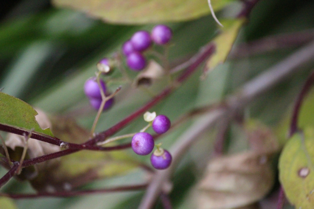 ムラサキシキブ(コムラサキ)の実 ハニーサックル❝ウインドワード❞の実 斑入りヤブランの実。黒く光っててキレイ ニラの種もカワイイ 風船かずら エキ...