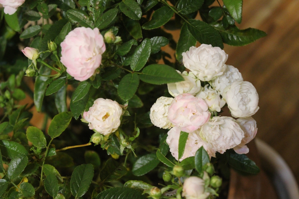 エモーションブルー(ローズシナクティフ、デルバール) サニーノックアウト(メイアン、1枚目は数日前に撮ったもの) スノーシャワー(J&P) ピーチドリフト(メイアン) 数日前に撮ったピーチドリフト スヴニールドゥトレラゼが色付...