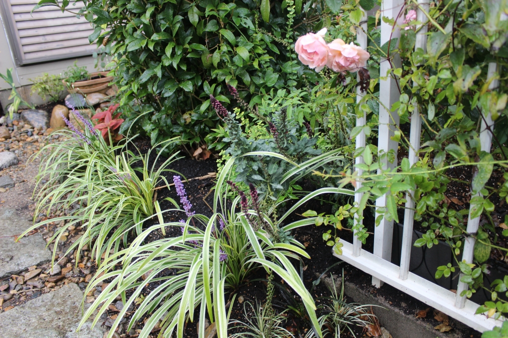 金木犀の株元に植えているヤブランが咲きだしました。 ヤブランの隣のワインレッドの花はリシマキア "ボジョレー"、上のバラは開花2日目のヘブンオンアース(コルデス) リシマキア "ボジョレー" バラ”ヘブンオンアース” ヤブランの手前にはヤブランよりも小さな黒龍と白龍を家来のように植えた ...