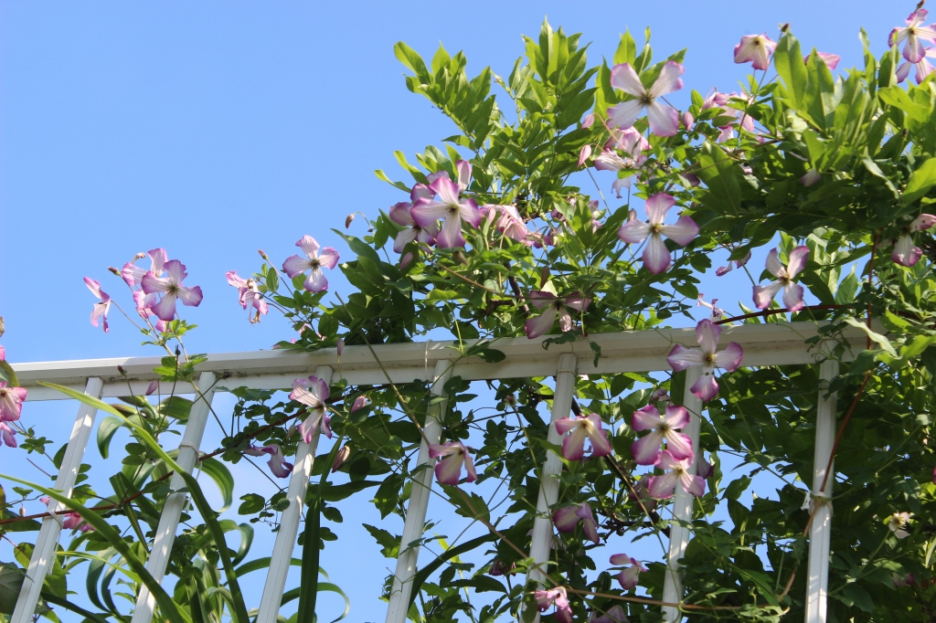 クレマチス ❝アイアムレディQ❞ 去年の11月に2年生苗を植え付けたばかりなのですが、ツルを伸ばしながら開花しかなり広い範囲で咲いてくれています🎶 一緒に咲いているベル型のクレマチス レディケイコ(赤) と 這沢の実生(ピンク) &nbs...
