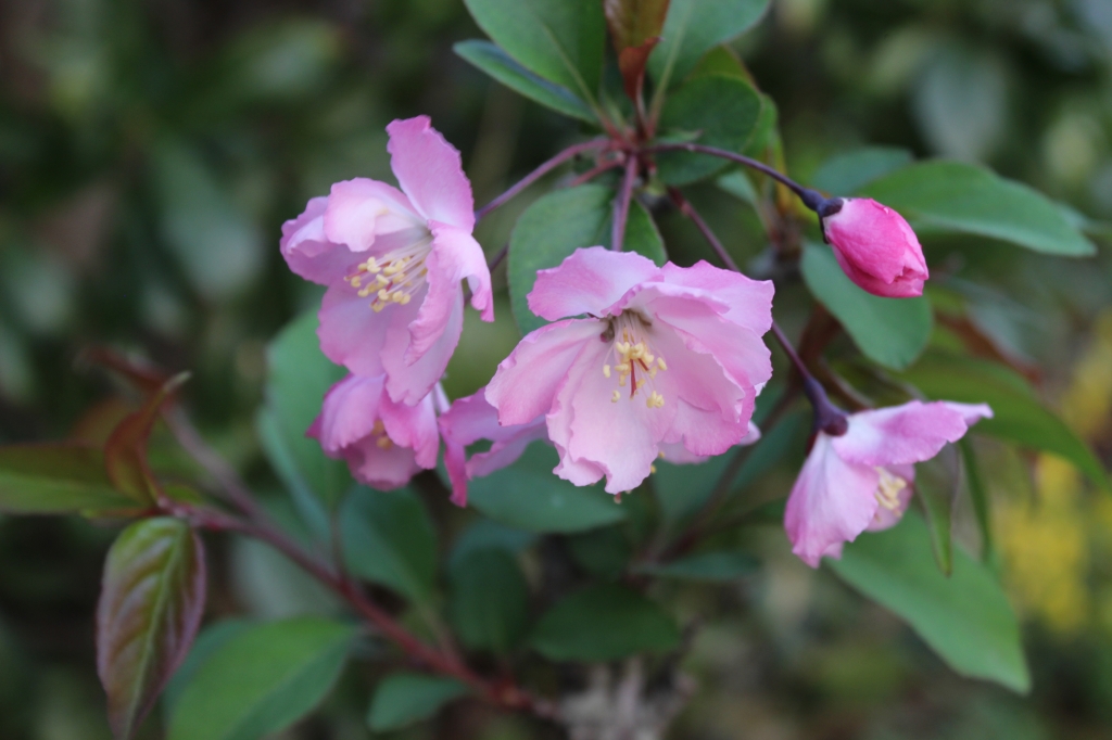早春の花木一気に咲いてきました お隣さんからいただいたハナカイドウ 11月頃にお隣さんが、『(亡くなられた)主人が育ててたけどなんかうまく咲かんで。これどうやって育てたらいい?』と聞かれたハナカイドウ。 ハナカイドウは育てたことないからよくわからなかったけど、ひこばえが何本か伸びていたので『これは取ったほうがいいと思う』とアドバイスすると、『鉢も重いし、私よう育てんからあげるわ』と言われたのでいただくこ...