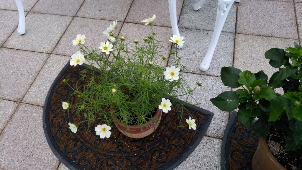 8月末にホームセンターで小さな苗(税抜98円でした)を購入したコスモス クサントスが2度めの満開です 購入してすぐに植え替えて摘心し、3週間ほどで満開になりましたが台風が来たこともあり早めに切り戻して生け花にしました。 それからまた3週間ほどでまた咲き始め、また満開になりました🌻🌻🌻 8月21日に撮ったコスモス クサントス 購入時は1本の枝が伸びているだけの状態でしたが、芯を止めたことで下葉の枯れ込みもなく、脇からたくさんの枝が伸びてこんもりとコンパクトに育...