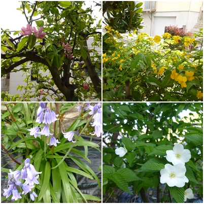 JUGEMテーマ:花のある暮らし JUGEMテーマ:花・植物・フラワーアレンジ・園芸 咲き誇る 庭の主かな 馴染み花 昨年、実家に入った植木屋さんに大ナタを振るって貰い大改造! お蔭で今春は、今まで隠れて咲いていた色々な花が、目に付く様になりました 珍しい花はないのですが 写真左上から 花梨・山吹・イングリッシュブルーベル・白山吹です 花梨は、今年は実が成るのかしら? 山吹は、垣根に押されて殆ど目立たなかったのに、今年は当に咲き誇る!と言う言葉がピッタリ嵌まるほどの咲ぶりです イングリ...