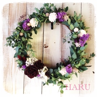 急に涼しくなり秋の虫の音が響き出しましたね 今回はプリザ(バラ、紫陽花、かすみ草)はもちろん、生のユーカリやドライ(スターチス、木の実等)&ペーパーフラワーを使ったリースアレンジです ユーカリがドライになった時も浮かない様にお花もシックに仕上げました リースサイズは30cmです お部屋に飾るとユーカリの良い香りが広がります レッスンは材料費込みで4800円(税込み) もちろん道具の貸し出し無料ですので、ホントの手ぶらレッスンですよ お申し込み、お問合せはこちらまで 3...