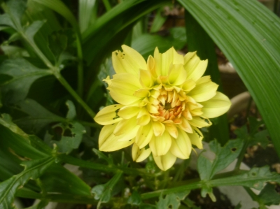 JUGEMテーマ:花のある暮らし JUGEMテーマ:花・植物・フラワーアレンジ・園芸 ダリア花 陽に恋しつつ 初咲きし 毎日よく雨が降りますね! 昨日の七夕、今年も織姫様と彦星様はランデブーできず… そんな中、我が家の庭でダリアが初めて花を咲かせました 実はこのダリア、昨年秋にホームセンターで処分品で売られていた物を購入しました 多年草と言う事だったのですが、土の上に出ている部分は冬になり枯れてしまい もう駄目だと諦めてそのまま鉢ごと放置してあったのですが 春になって、芽...