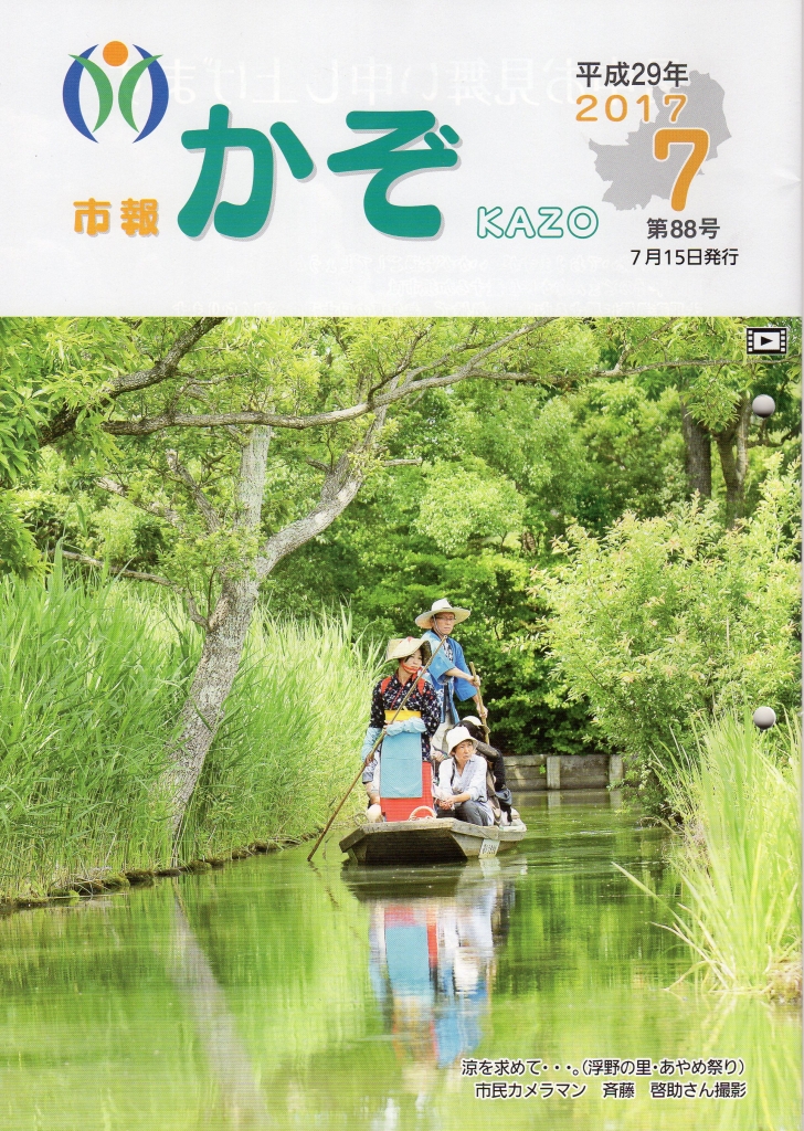 「市報かぞ」7月号の扉写真が、あまりに綺麗だったので投稿しました。「浮野の里・あやめ祭り」の写真です。「田堀沿いのクヌギ並木には遊歩道があり、ベンチに座ってのんびり過ごすことができる。全国の「水の郷百選」に認定。」市報より 昭和の時代にタイムスリップしたような風景が、今も残っています。あやめの季節に訪れてみてください。 先日、友人を迎えに行った朝、オニバス自生地のそばをとおり立ち寄りました。今が見ごろです。 「オニバス自生地は北川辺地域のほぼ中央に位置し、昭和32年まで越中沼があった...