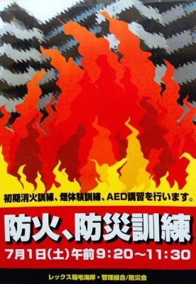 レックス稲毛海岸では 7月1日(土)に防災訓練を行います。 管理規則で定めている 消火訓練の他に 今年は 煙体験とAED講習を行います。 いざという時に ご家族の生命と財産を守るため 多くの方にご参加いただきたいと思います。 JUGEMテーマ:趣味・日常生活