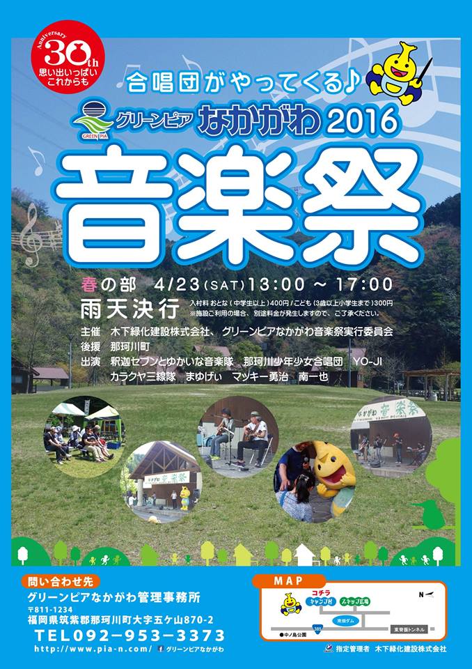 JUGEMテーマ:趣味・日常生活 なぜか全く存在を知らなかった「グリーンピア那珂川」。「グリーンピア八女」は知っていたのに、なぜ近い方を知らないのか? 昨年の秋に初めて訪れました。 今年は開園30周年だとか…。 那珂川には従姉妹も住んでいて、子どもの頃から年に何度も行っていたのに…。 まあ、子どもがいないのであまり行く必要性は無かったような気がしますが。 明日は「グリーンピア那珂川音楽祭」。キャンプ村で行われます。入村料だけで楽しめるのはとてもありがたい催し...