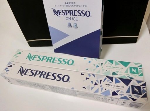 ネスプレッソ 新発売のアイスコーヒー用カプセル「ネスプレッソ ON ICE」を買ってみました♪ 2種類、数量限定販売です。 ◎インテンソ・オン・アイス 焙煎香と木やココアを想わせる香りが特徴の、風味豊かで爽やかなブレンド ◎レジェロ・オン・アイス フルーティーなアロマとナッツのような香りが豊かに広がる、飲みやすく爽やかなブレンド [作り方] グラスに90gの氷を入れる。 氷の上に エスプレッソ(40ml)で抽...