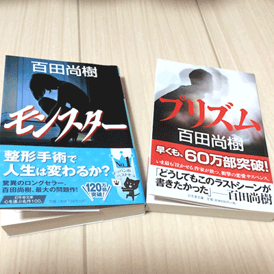 JUGEMテーマ:本の紹介 なんだか退屈な夜に自宅の本棚から出してみた2冊の本。 【百田尚樹】の「プリズム」と「モンスター」 あまりにもストーリーが思い出せず...ペラペラっと読み返してみました。 「プリズム」と「モンスター」は実は、お互いが「対」になっている小説とのことで、2冊まとめて購入したんだった...んで、2冊まとめて読み返してみました。 ==あらすじ====================== 【モンスター】 田舎...