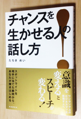 出版社から本が届きました!金色のバランスがとても上品です。本文も2色で、とても読みやすい素敵な本に仕上がっています。http://booklog.jp/users/letters-mami『チャンスを生かせる人の話し方』自由国民社たちきめいさん著■内容紹介ビジネスマンにとって、生命線とも言える「スピーチ」。よいスピーチには、一瞬でその場にいる人全員に名刺を配るのと同じ効果があると気付いていましたか?あなたが意識を変えれば、スピーチもよい方向に変わるのです。「必要なことを伝える力」だけでなく、あがり症の方でもできる「感動を伝える力...