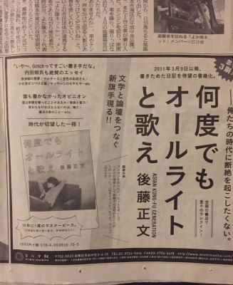 JUGEMテーマ:本屋の部屋 10年に一度のマスターピース 2016/5/29・30 朝日新聞 広告にて 一言コメント