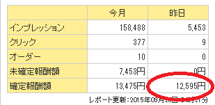 JUGEMテーマ:☆☆自宅でお小遣い稼ぎ☆☆ シルバーウィーク突入ですね^^7月、8月とおっそろしいほどの成果が上がったアイモバイルですが今月は9月19日現在45500円の成果です^^かなりの激減ですが、想定内の成果です。でも4万円も成果が上がれば出来過ぎなくらいです^^確か今月の目標成果額は10万円だったかな?かなり難しい状況ではありますが焦らずのんびり行きたいと思っています♪ではではみなさん最後までありがとうございます♪ついでに「ぽち」して頂けたら幸せです(´∀`*)♥※私のように「手段を選ばずお小遣い...