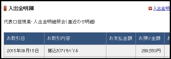 JUGEMテーマ:☆☆自宅でお小遣い稼ぎ☆☆ 待ちに待ったi-mobile for AFの7月分請求分の報酬が入金されましたヽ(*´∀`)ノ 7月と言えば、成果が半端なかった月です!振り込まれた額は289,550円!一気にこんな大金が振り込まれたのは生まれて初めてです( ̄TT ̄)鼻血ブー頭の中はお祭り騒ぎですwこの入金されたお金は大切に使いたいと思います^^なんてったってディズニーランドに行くための貴重な資金です!来月も同じくらい振込まれる予定なのであとはいつ行くかを決めるだけ位の勢いです。(でも、まだ旦那にはこのお金のこ...