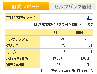 JUGEMテーマ:☆☆自宅でお小遣い稼ぎ☆☆ 今月はi-mobile for AFのアフィリエイトも予想通り成果が1日1件以下と言う低迷ぶりでのんびりお小遣い稼ぎをしている管理人です^^しかし今朝!思いがけない所で成果が上がり驚いているところです!!いつものようにA8.netのレポートを確認昨日の「未確定報酬」の欄に「1,000円」の文字が(;゚Д゚)!なになにっΣ(゚д゚lll)!?1,000円なんておっきいな数字何がどうなっているの!?と調べてみましたところA8.netって「ファンブログ」って言うブログサービスがあるのですがそこに、恐ろし...