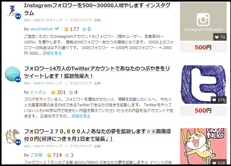 JUGEMテーマ:☆☆自宅でお小遣い稼ぎ☆☆ 昨日ご紹介した【ココナラ 】 ※紹介コード「d8gjv」でココナラポイント540Pもらえます※なんと!私のバナーからお二人もご登録いただきました!ありがとうございます!感激で胸がいっぱいです(>_<)あ!そう言えば、私も登録してみよう!と、今しがた登録しました♪そして【ココナラ 】を散策していると、気になるカテゴリーが・・・その名も【アクセスアップ・拡散】うわ〜〜〜!今の私が喉から手が出るほど欲しいもの♪でも、すごく効果がありそうなサービスは1万円超えで手...