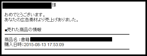 JUGEMテーマ:☆☆自宅でお小遣い稼ぎ☆☆ -------------------------------------ランキングに参加しています。応援よろしくお願いします! --------------------------------------【売上速報】なんて素敵な日々なんでしょう(*゚▽゚*) 成果が上がるとすぐに連絡がくるアフィリエイトがあります。と言っても滅多に成果は上がらないのですが1件の成果がとても大きいので【売上速報】の文字はキラキラして見えます。あ、でもよく見ると「売上げありました」だって^^「売上げがありました」が正解だとは思いますが速報なので慌て具合...